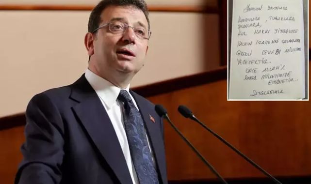 İmamoğlu'nun gözaltına alınması kamuoyunda geniş yankı uyandırırken dikkat çeken bir bilgi daha ortaya çıktı. İmamoğlu'nun evinde onlarca polisle arama yapıldığı dakikalarda defterine el yazısıyla bir not düştüğü öğrenildi."GEREKLİ CEVABI MİLLETİMİZ VERECEKTİR"